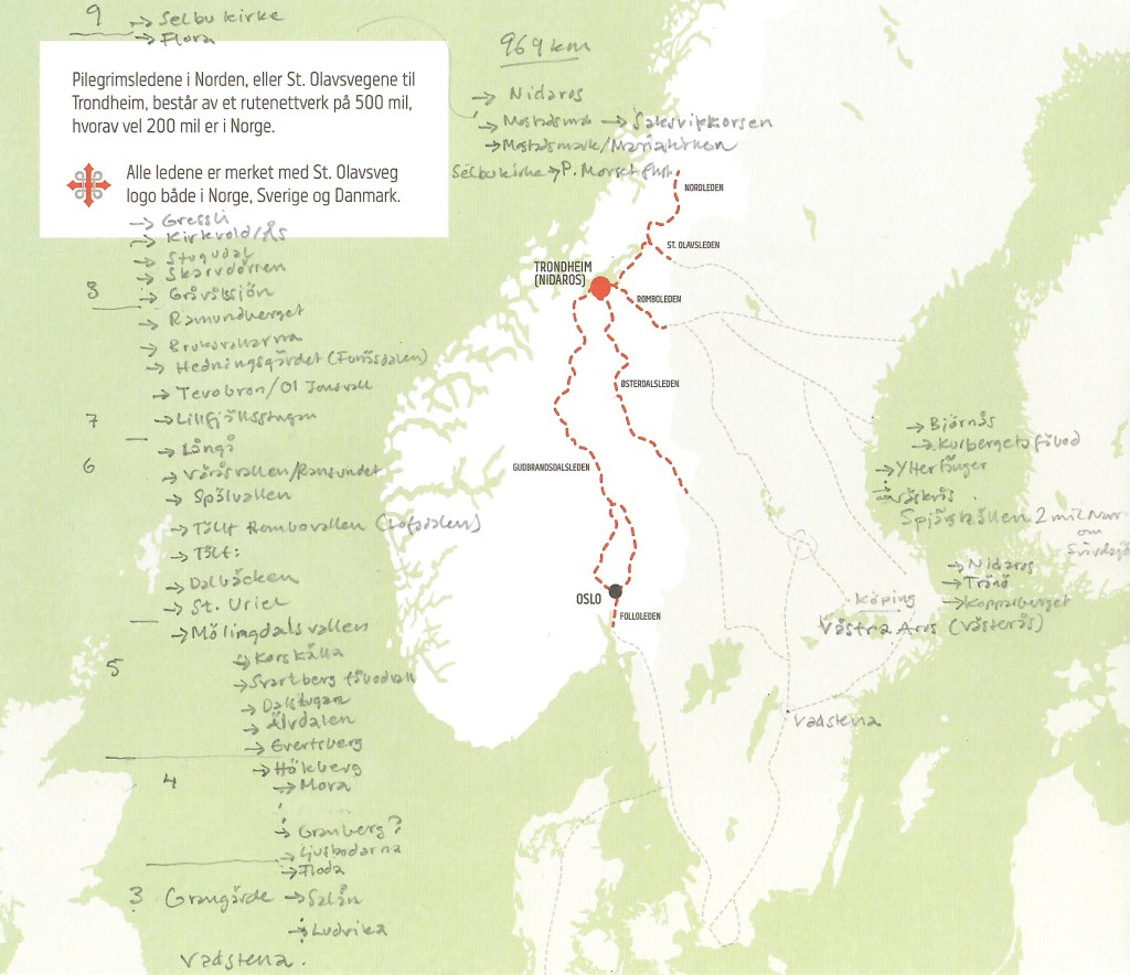 - Broschyr med karta utgiven av Nasjonal pilegrimssenter. (se nedab, finns inte på nätet)